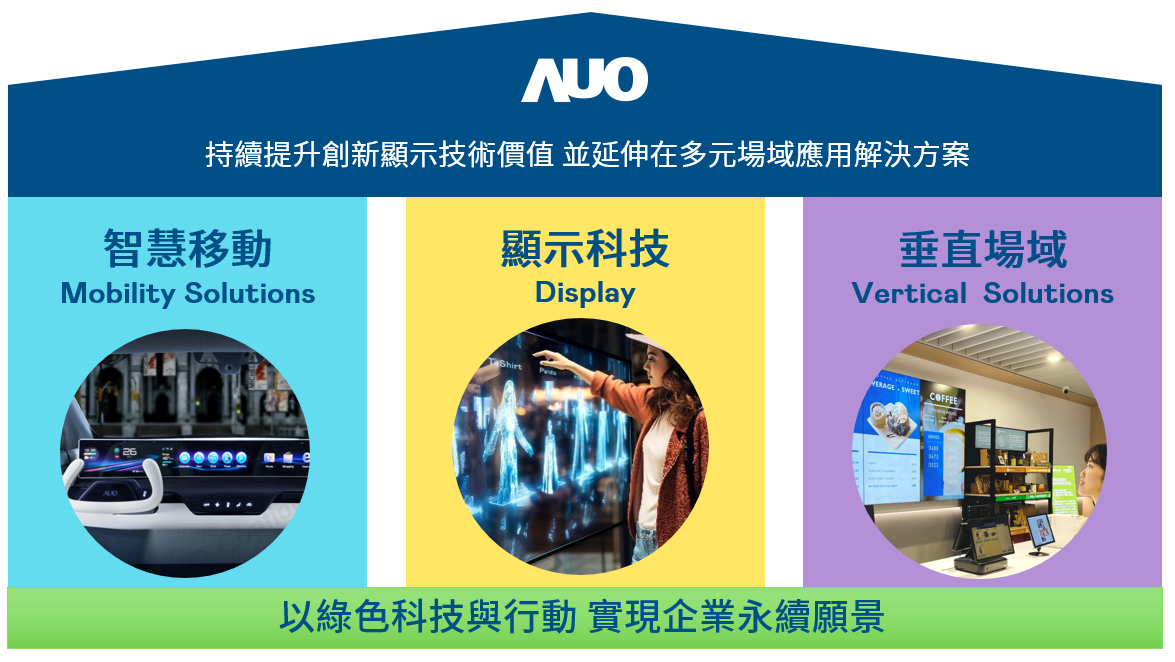 我們持續推動「雙軸轉型」,在精進顯示技術附加價值(Go Premium),與深化垂直市場應用(Go Vertical)的策略下,對應j9九游会登录入口首页j988me的優勢競爭力與趨勢,我們奠定顯示技術、智慧移動、垂直場域三大永續營運支柱,在顯示技術領域的根基之上,延伸布局多元場域應用解決方案。將先進顯示科技助力智慧移動及垂直場域發展,並以綠色科技與行動為實踐,在轉型之路上貫徹永續經營之願景。